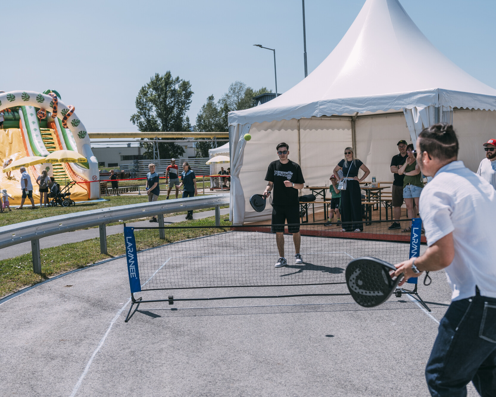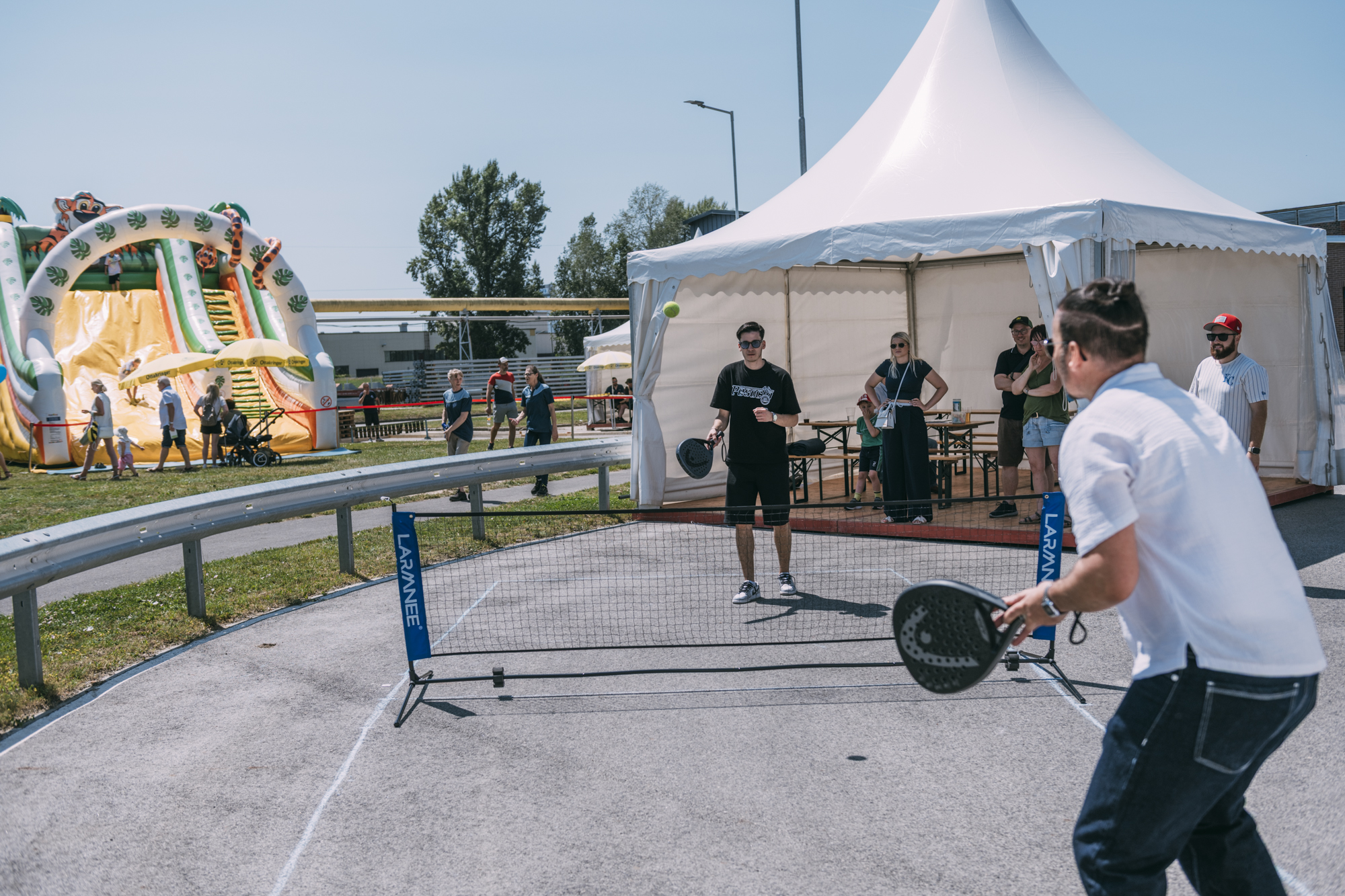 Viele Kinder nutzten die Gelegenheit, Neues auszuprobieren oder einfach mal so richtig herumzutoben. Für uns als Sektionen war es besonders schön zu sehen, wie groß das Interesse an unseren Sportarten ist und wie viel Spaß Jung und Alt dabei hatten. Neben unseren Stationen bot das Fest natürlich noch viel mehr: Kinderschminken, Riesenrutsche, der Flying Fox für Mutige, der Bummelzug durch die Produktionshallen und nicht zuletzt ein stimmungsvolles musikalisches Programm mit unserer Werkskapelle und der Chor- und Volkstanzgruppe.