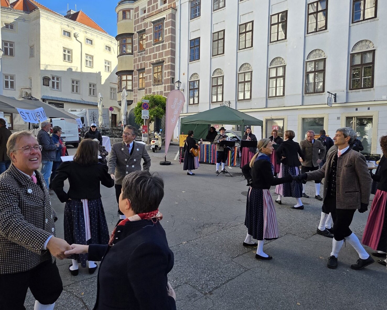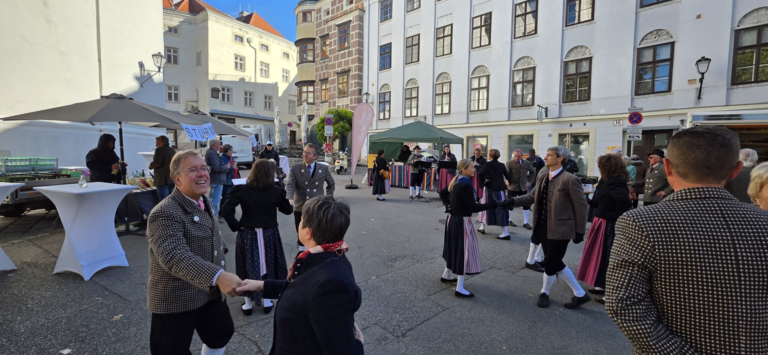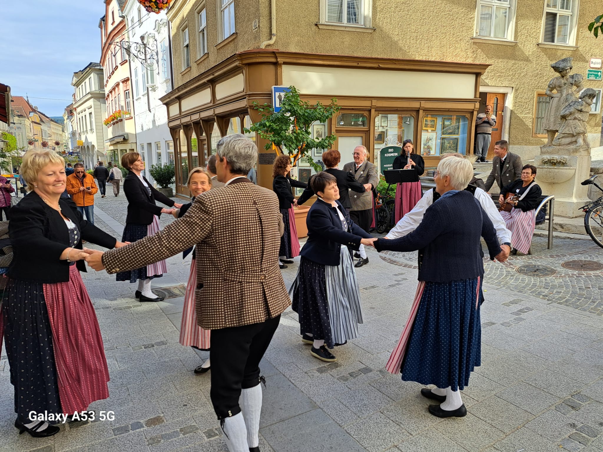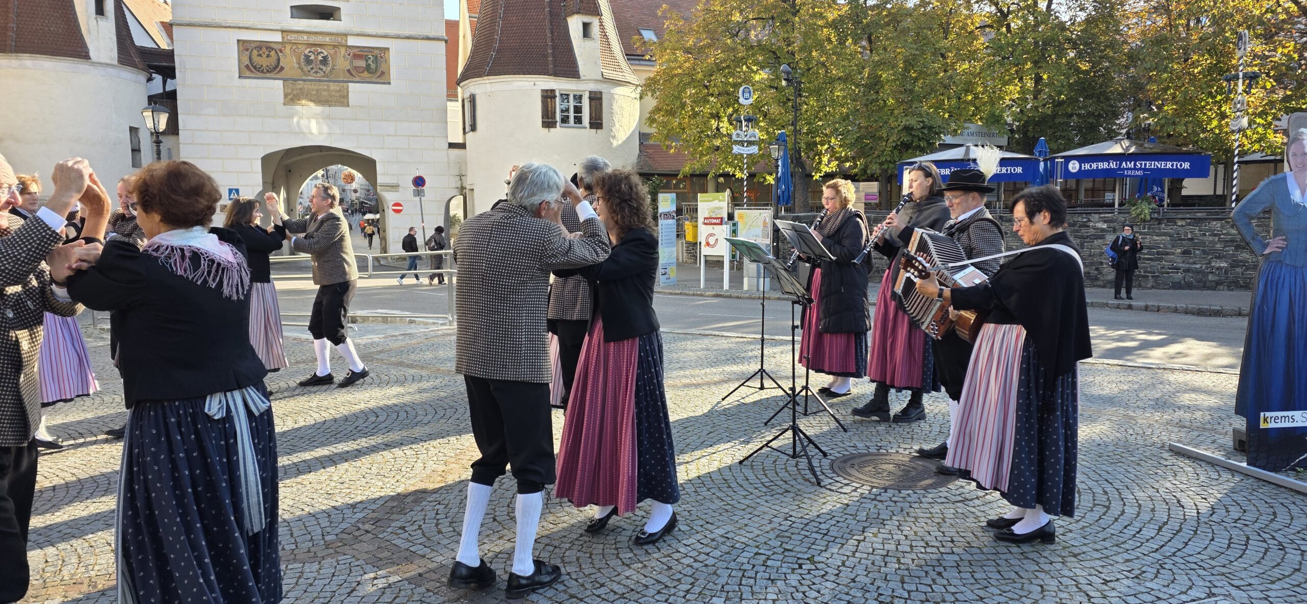 Am Samstag, 04.10.25 wurde im Zuge des „Genussmarkt – Krems“ die Fußgängerzone in Krems tanzend und spielend entlang gewandert. An einigen ausgewählten Plätzen konnten sich die zahlreichen Zuschauer an den verschiedensten Tänzen erfreuen.
