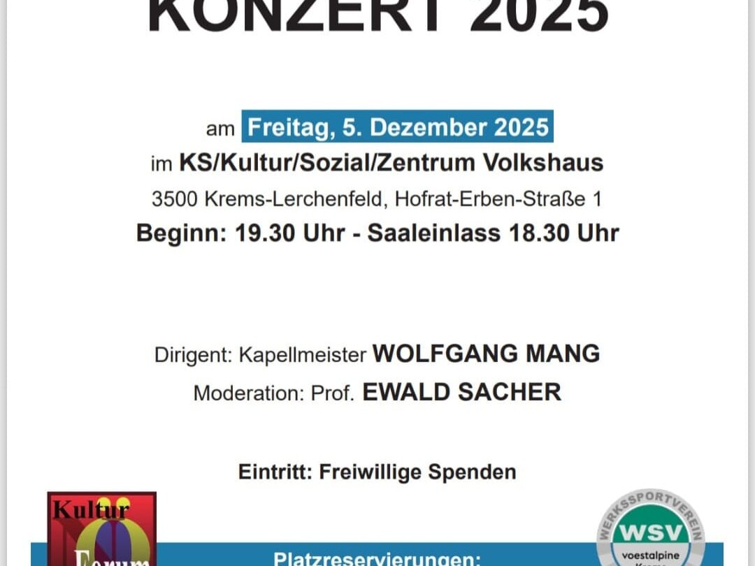 Liebe Freundinnen und Freunde der Werkskapelle voestalpine Krems! Wie jedes Jahr laden wir Sie zu unserem traditionellem Barbara-Konzert herzlich…